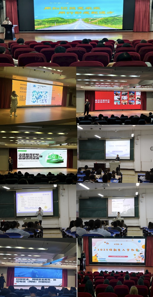 学院党委副书记许华珂以《用知识照亮未来,用行动成就远方》为题,为新生讲授“开学第一课”。资助专干牛鹏举老师为全体新生讲解我校资助政策及申请流程,让新生们对学校的资助政策有了清晰的认识。2024级辅导员黄佳翔老师以《跟党走学校史:强化意识形态引领》为主题开展新生入学专题教育。为2025级新生讲述了学校的历史及学生入团、入党流程。党政办公室主任刘飞老师围绕《明教学学籍规定,传校歌精神力量》主题,系统解读教学管理规范与学籍制度,详细说明了选课流程、学分要求、考试纪律及学术诚信准则,帮助新生规避常见误区。2023级辅导员李正秾老师以《法律教育护航:学风建设与心理健康协同发展》为主题,结合校园贷、网络侵权、学术不端等案例,强化新生的法制观念,同时李老师为新生开展心理健康指导,帮助学生化解离家焦虑、学业压力等困扰,助力学风建设与心理健康协同发展。2025级辅导员张森林老师以《守校纪明规范,筑牢校园管理防线》为主题,带领新生共同学习《学生手册》,重点讲解考勤管理、宿舍安全、奖惩办法等相关规定,并结合违纪处分有关案例开展警示教育,强化新生规矩意识与安全观念,突出校园管理的刚性与温度。播音与主持艺术教研室主任吕志昆老师以《播音与主持艺术专业导引课》为题,通过“行业前沿洞察+专业能力实训+职业规划指导”三维模式,为播音与主持艺术专业新生点亮专业成长之路。广播电视编导教研室主任李晓佳老师以《编导——故事的工程师》为主题,为新生开展了一场专业导航讲座。她从行业趋势与就业需求出发,深入分析了广播电视编导专业的发展前景,帮助学生在入学之初树立专业认知、明确学习方向。2022级本科辅导员韦一老师以《校园安全记心间,重点防范电信诈骗》为主题,从校园安全、网络安全、出行交通安全、防范电信诈骗四个板块切入,细致讲解隐患排查与预防方法及应急处置流程。